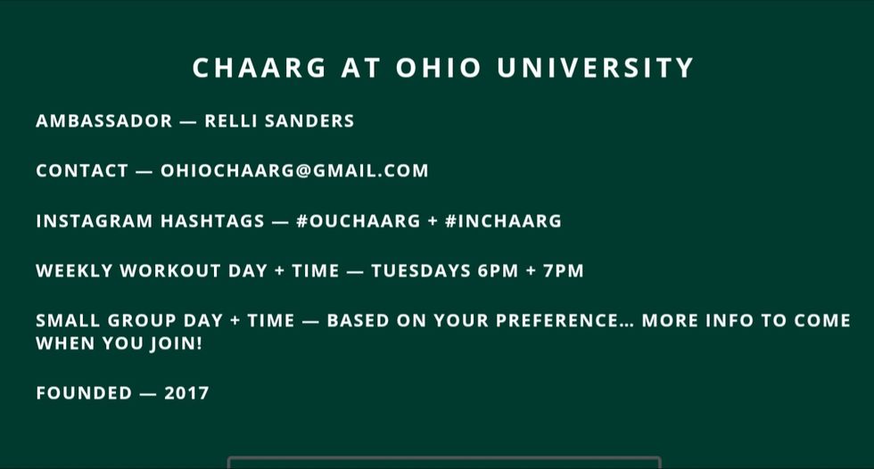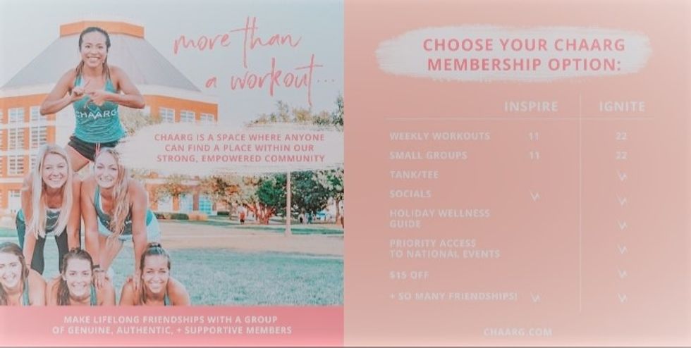 This organization has offered me so much comfort, support, and reasons to keep going after I joined during the hardest year of my life. I used to have the worst days until I'd go to a weekly workout or small group and instantly feel better when I was surrounded by an army of uplifting women. I cannot recommend CHAARG enough and I encourage every college woman to give it a try, even if you're not super athletic. We're all average and nobody here is a pro-athlete. Chances are, we're a lot like you.