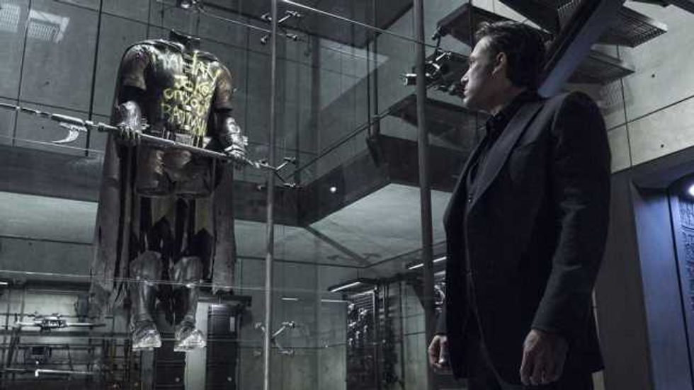 On top of all this, Ben Affleck does a really good job at showing just how much of a toll is placed on Bruce from donning the cape and cowl for so long. When we're first introduced to this Batman, he has already been protecting Gotham City for two decades. It's safe to say that during that time he's seen some stuff that messed him up psychologically, like the death of his side-kick, Robin.
