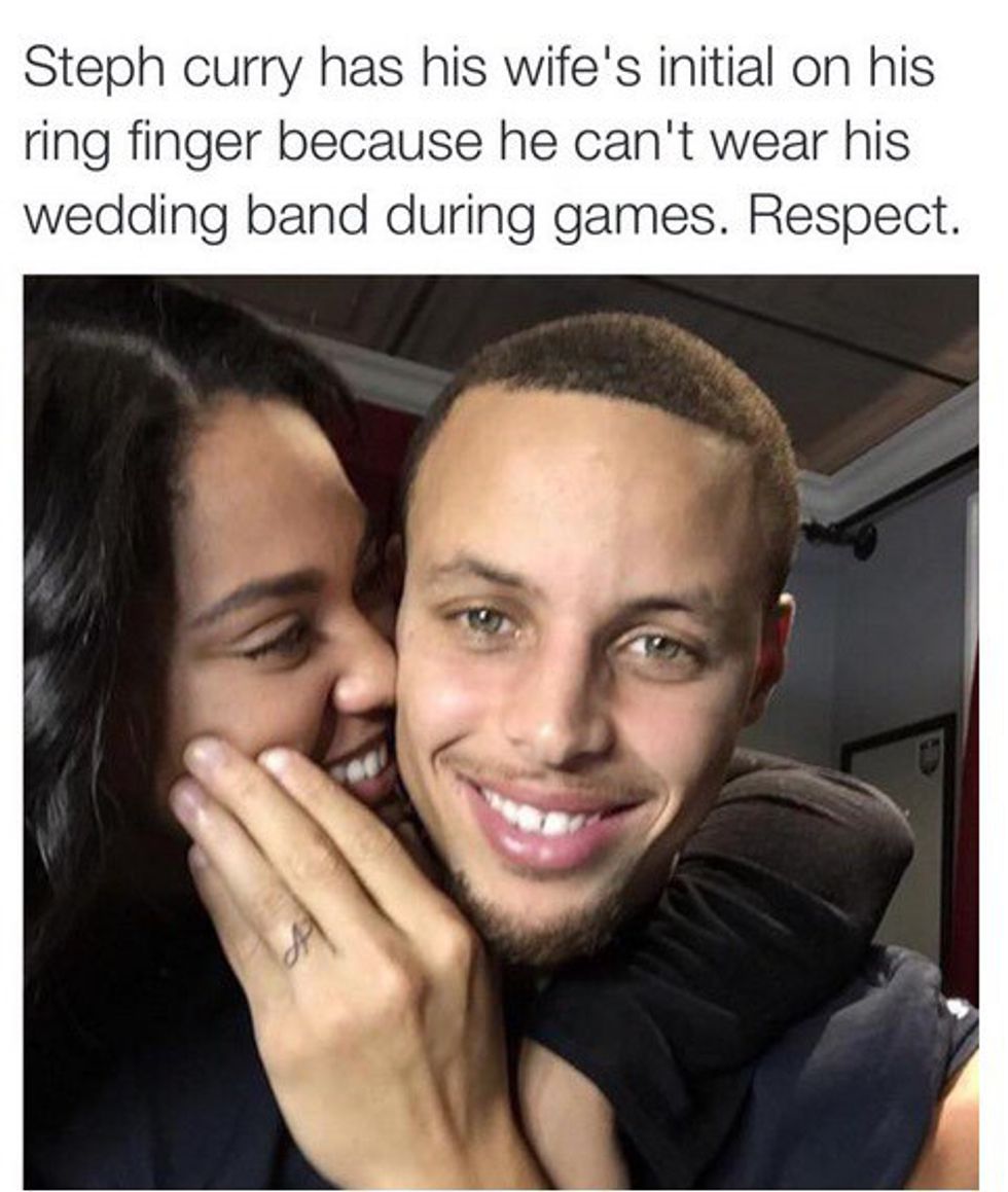 3. His perfect wife, Ayesha Curry. "We met when we were 14, 15 years old in Charlotte, North Carolina, and the last seven to eight years have been amazing. We've both grown into adults, we've moved cross country together, started a new life. And you're my backbone, you allowed me to do what I do, to focus on basketball and my career, and still have a family. The sacrifices you make are unbelievable. And I can't thank you enough for who you are as a person, how you challenge me, how you inspire me every single day." If that doesn't make you go "AWWW!", I'm not sure what does.