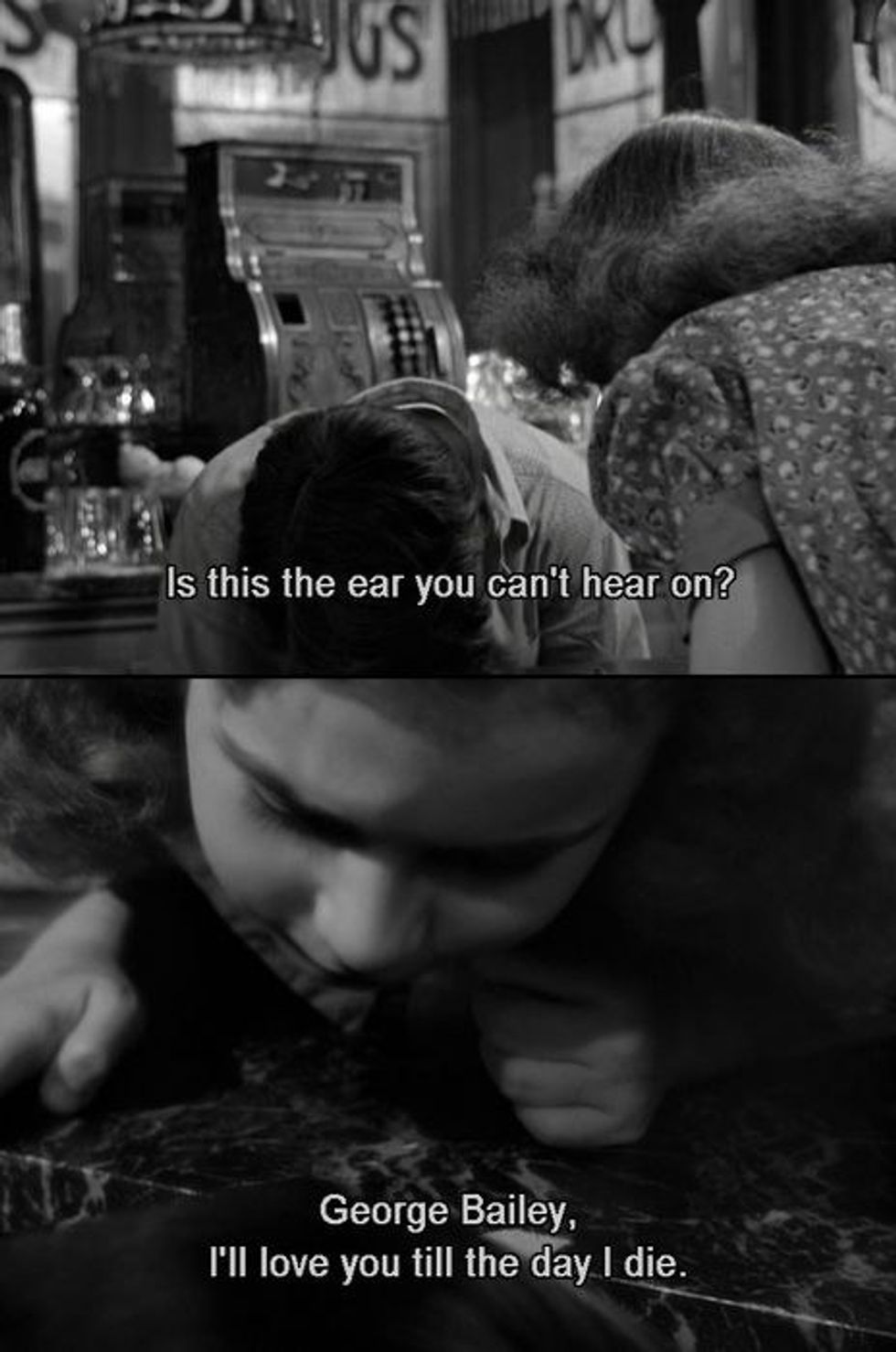 Being the hopeless romantic that I am, this beautiful love story was the first thing to catch my eye! As just a young girl, Mary confessed her undying love for George Bailey in the town's ice cream shop. What's even more heart wrenching is that she made sure it was the ear in which he was deaf so that he would never know. We watch them grow apart, reconnect, fall in love, get married, and have a beautiful family. Their love is so real and honest that I can feel it through the television screen!