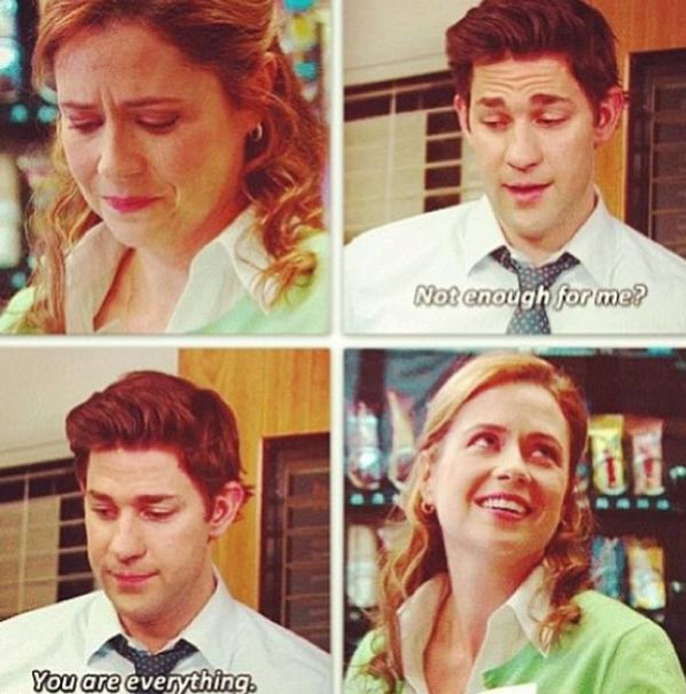 Jim and Pam should be everyone’s relationship goals. They aren’t perfect, and yet, that’s what makes them perfect. They are two average people who just happen to work in the same crappy office. They deal with losses, distance, breakups, an unplanned pregnancy and everything else life throws at a normal couple today. Jim and Pam are best friends and it is so fun to watch them fall in love on the show.