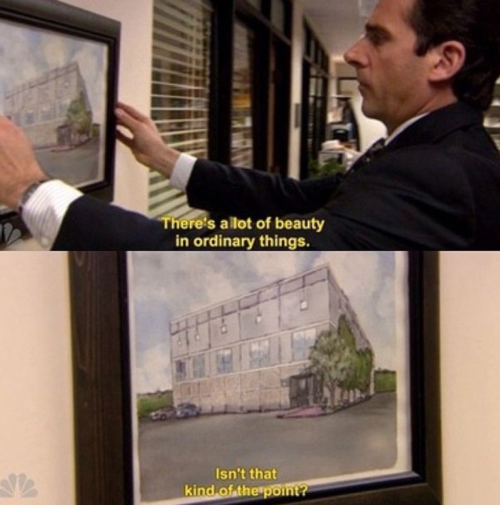 This show is absolutely character-driven. Every episode involves Michael doing something rude or outlandish, Dwight being insane and Jim’s popular “look” into the camera. The characters are all unique and yet, relatable. You can see yourself as Pam, wondering if a receptionist is all she’ll ever be and debating if art school is a good call. You can see yourself as Stanley, just wanting to retire. You can even see yourself as Michael, wanting to be loved and admired. They all bring something to the table; even characters you never thought would matter. You connect with them all and that’s what makes The Office extraordinary.