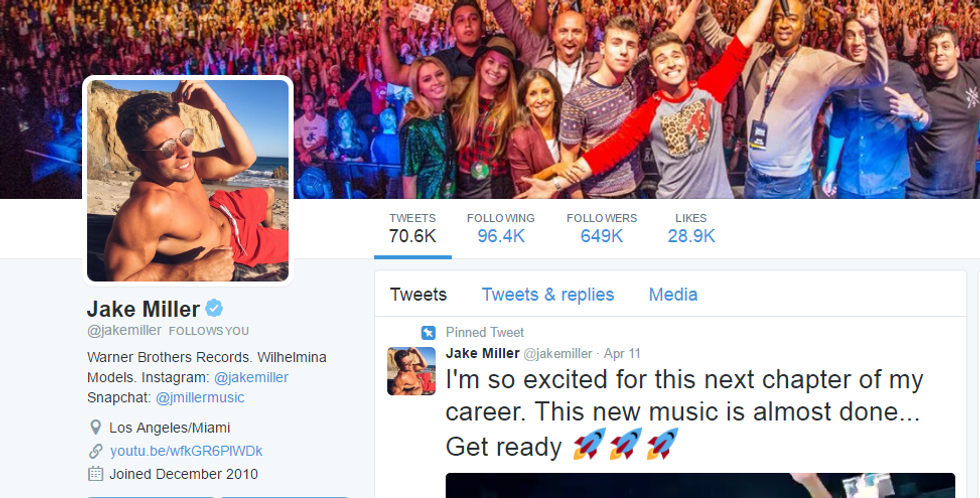 Jake Miller is very active on social media especially Snapchat, Instagram and Twitter. For instance, on July 12, 2014, Jake followed me on Twitter which was another happy day for me. When fans tweet at him, he gets back to them and is also very active with other celebrities. When it comes to Snapchat, Jake always give you the inside scoop on his life. He gives you access to; behind the scenes of his new music, studio visits, award shows that he attends or even when is at the club with his friends. Jake acts like a regular guy when it comes to social media.