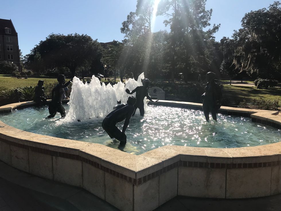 Yep. You read that right. All FSU's fountains are registered pools, so feel free to put on your swimsuit and enjoy the cold water on a hot day. You might even encounter a dog during your swim.