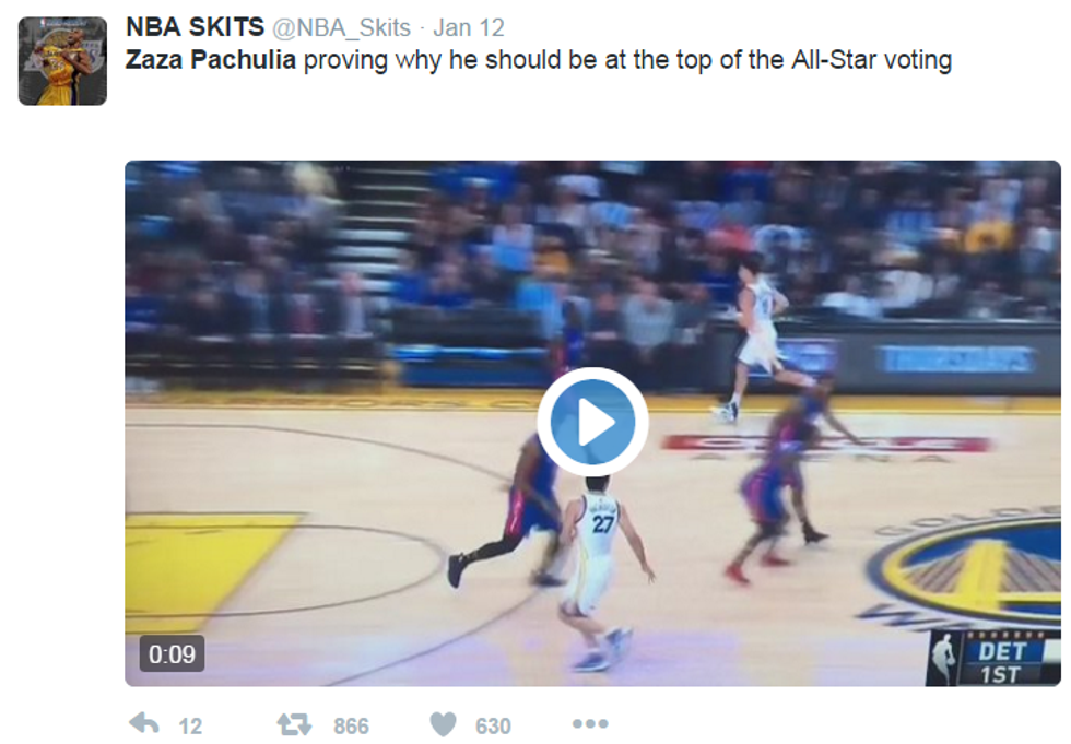 For the second year in a row, Pachulia has gotten vote totals that far exceed what his on-court performance would seem to deserve. Last season, when he played for the Dallas Mavericks, he finished fourth in the Western Conference frontcourt voting behind Kobe Bryant, KD and Kawhi Leonard, missing only by 14,000 votes.