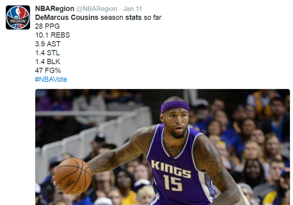 DeMarcus Cousins - 28 points, 10.1 rebounds and 3.9 assists per game this season.