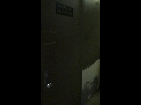 Scared of heights? This room will definitely add to your fear. Located over Theater B, lights and bolts are adjacent to the door. All you see are lights and a single door. Once the door is opened, the view gets more intense. All you see is red flooring (width fitting one person at a time) straight ahead. Looking down, you see the audience, the stage, and the lights that dangle above the space. The view reminds you of the cliché dying scene at a movie theater.
