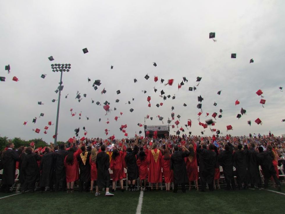 When you walk towards your seat on the football turf you see the friends you grew up with and been friends since kindergarten (shout out to Allie and Cesca) then you see the best friends you made throughout the years, then your eyes glance at the friends you lost and actually wish them the best, then you see the more than you should of crushes you had from elementary to the week before graduation, then lastly, you see you see at least 200 to 300 people you never met before!