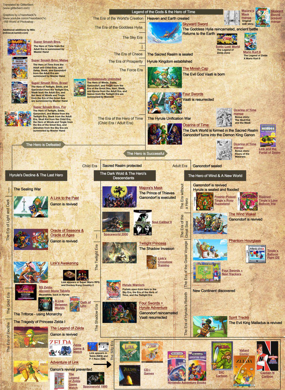 Now, sometimes the time lines are very simple; clearly the first game is first in the timeline, then the second game, etc, etc. But other times, it's more like you memorized the Zelda timeline and you realize that there's no easy way of explaining it to people who have not also put in that same amount of effort towards truly learning the game. Once you figured out the timeline though, it's like every game you've played makes sense. It's very rare that a game will tell you if it is in chronological order, but usually focusing on Easter eggs and the real story of the video game, you can tell how it fits into a timeline.