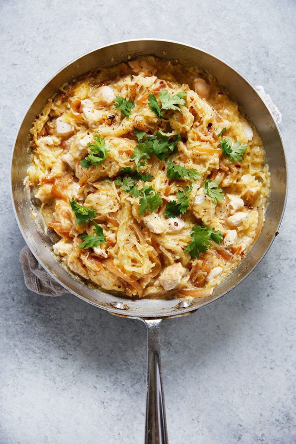 4. Spaghetti Squash Alfredo w/ Chicken & Caramelized Onions