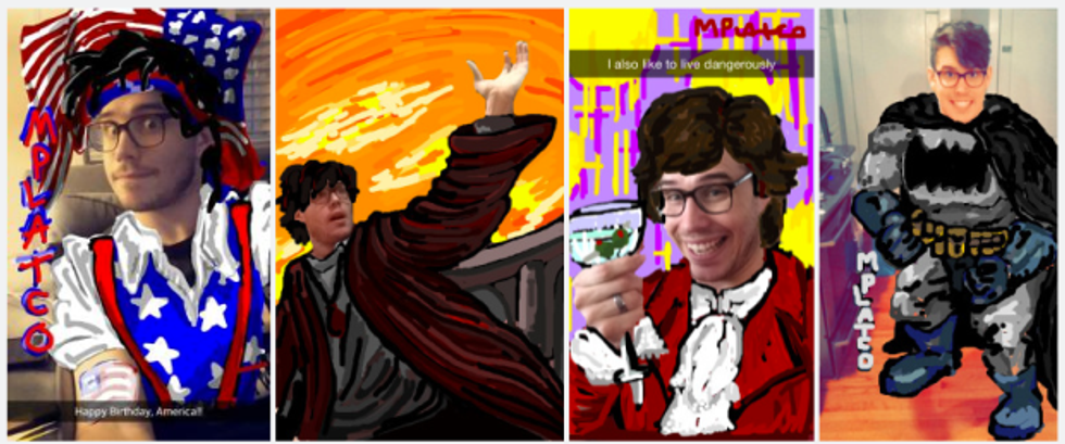 Known as the Van Gogh of Snapchat, Michael Platco stories are full of detailed finger- drawings that bring ordinary people and objects to life. Most of his snapchats involve selfies that he turns into magical drawings by adding funny costumes, cartoon characters, and comical scenes. He has received so much praise for his snapchats that he took up snapchat drawing as a full time job and is even getting payed by snapchat for his detailed drawings. You can catch up with his unreal drawings @Mplacto