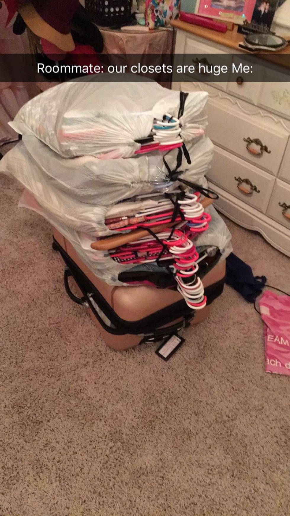 At this point I was questioning how in the world I'm supposed to transport that much clothes. So, I went to the worldwide web of Pinterest and found a crafty little trick where you bag all your clothes on hangers so they stay together and you can just neatly hang them in your closet.