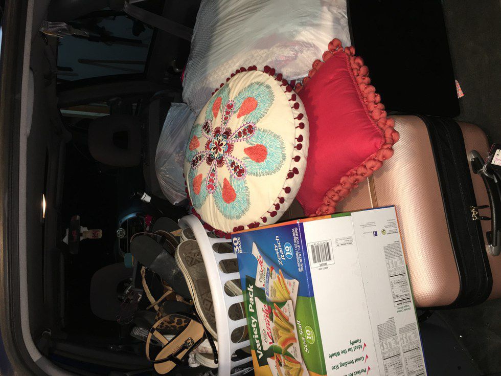 With the help of my engineer dad the triumphant moment of loading everything in my car finally came. The door shut all the way and I could see out my back window. My packing had been a success.