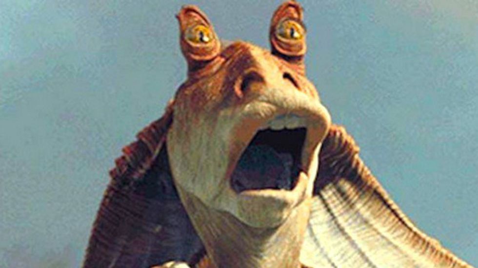 Alright, I'm just putting this here to put this here. Aristotle once said, "It is the mark of an educated mind to be able to entertain a thought without accepting it." So stick with me on this one. Maybe this one can fit into the prequel remakes, but imagine Jar Jar... buff, and not the ugliest alien ever. Imagine him with a deep voice saying "Meesa take you to the city." Ok now imagine him with machine guns taking down an entire droid army on his own in the thick swampland of Naboo. Basically imagine if Jar Jar was Rambo. I think it would be hilarious and in some alternate reality this did happen, but it's not too late for ours. Make it happen in this reality Disney, make Jar Jar a bad ass action hero with epic one liners. You can make this what if into a why is?