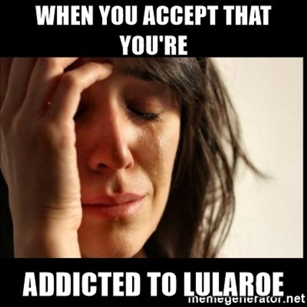 Denial and disbelief. You're probably denying that you have a problem and are in disbelief as to the fact that you've spent $150 on LuLaRoe in one month alone. By now you've probably been confronted by concerned friends and family members about your addiction and have had to watch your favorite consultant's live sale under the cover of darkness so that no one discovers that you can't stop no matter how hard you try.