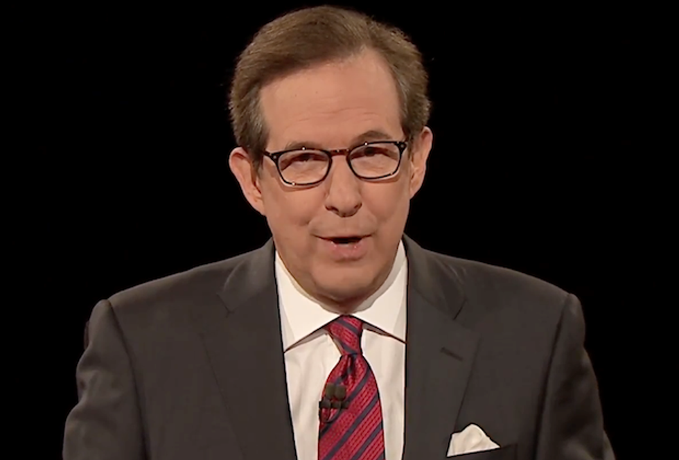 Chris Wallace of Fox News has probably been the best moderator for this year's presidential debates. He controlled the antics of Donald Trump, kept the debate moving along, and was, by far, the most good looking moderator. He'd be a "10" on Trump's scale...if he applied it to men. I'd vote for him if he could be a write-in candidate. Oh, wait, I can do that! Ha ha ha ha! But, seriously, I'm with her.