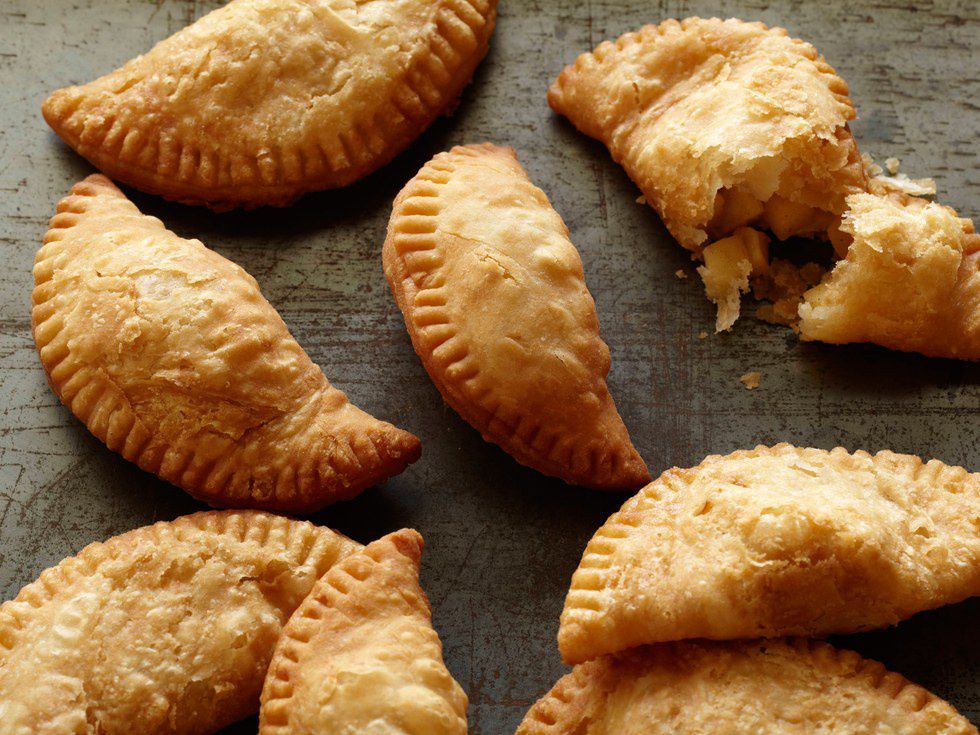 - In each round, place 1 heaping tablespoon fruit. Moisten edges with cold water, fold in half, and press edge with a fork to seal. Repeat with the remaining pastry and filling.