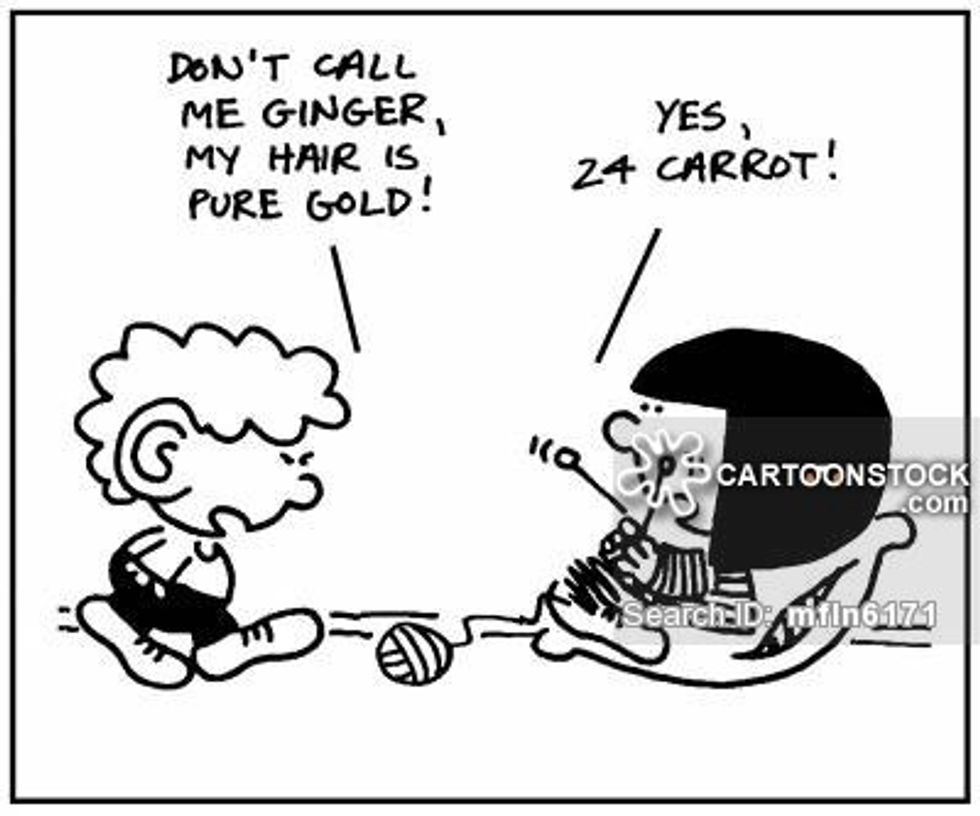 Teenage Mutant Ginga Turtle, Ginger Snap, Gingivitas, Carrottop, Freckles, Red Hot, Big Red, just to name a few. You begin to answer to references to your hair more than your actual name. You can try to fight it, but honestly it’s no use. Just embrace it, Red.