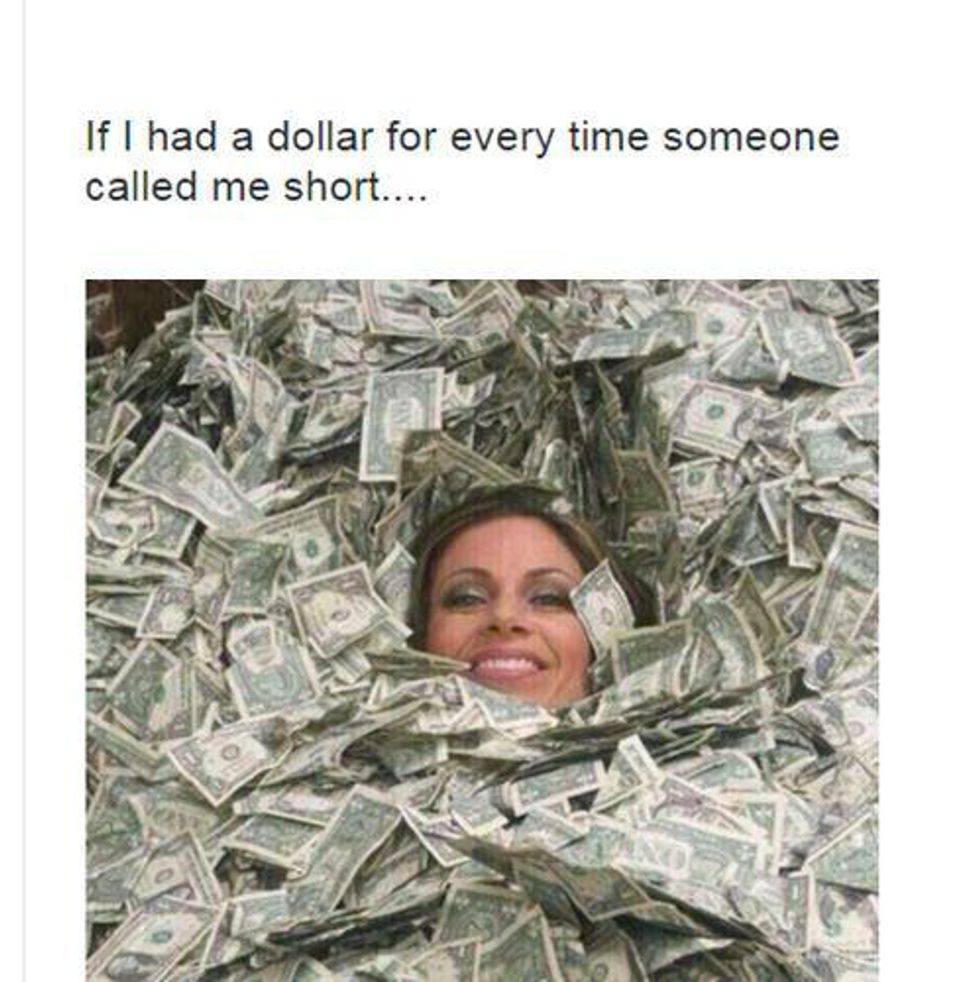 We're really small. We take pride in that extra half-inch. It makes us feel taller. Don't give us crap for stating that we're half an inch taller than you think we are. Again, you will probably get kicked in the kneecaps. Every short girl will agree that you deserve it.