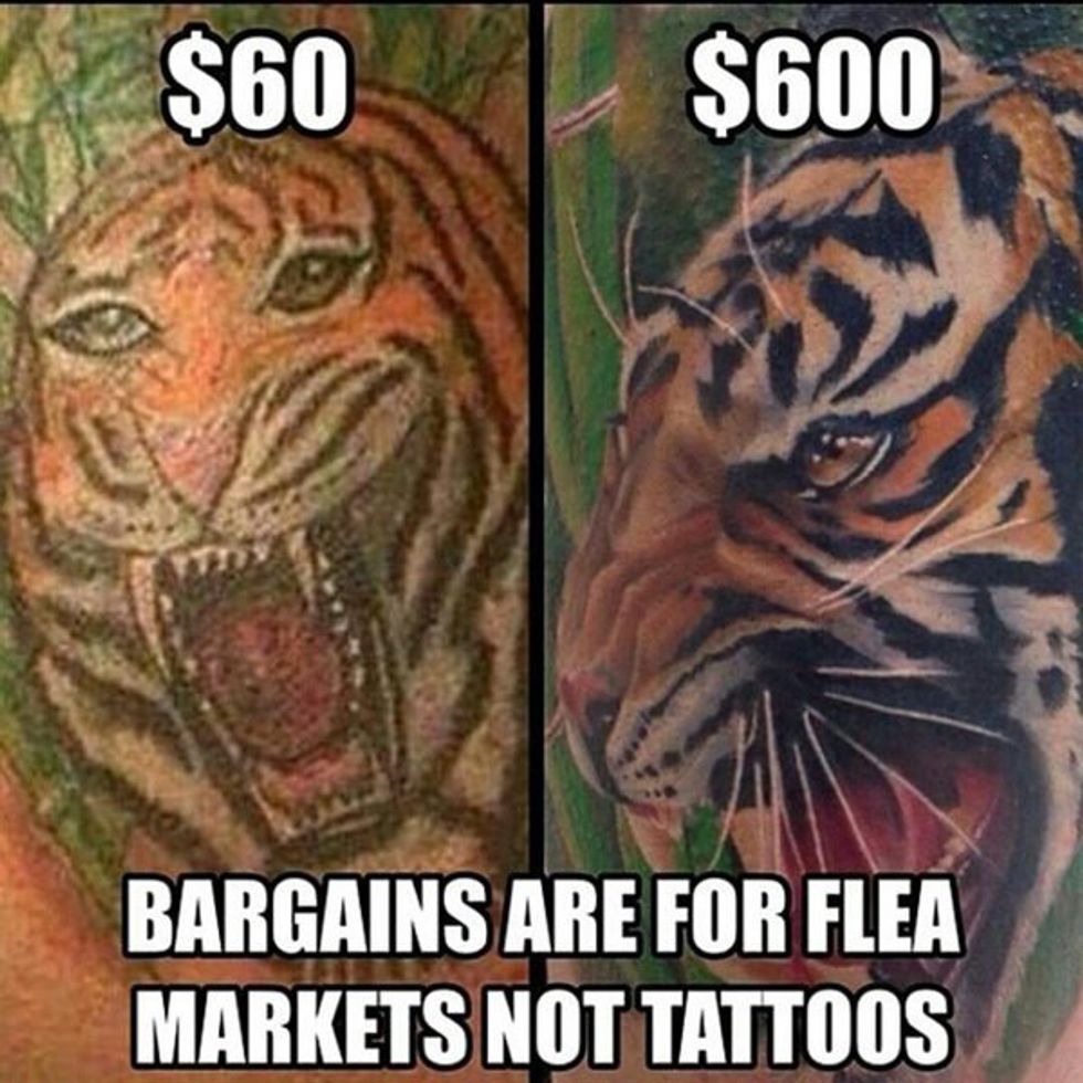 While some simpler designs can turn out well for a bargain, more intricate tattoos should be done by an expert. When it comes to tattoos, the more money you put into it, the better it will look. Save up for a good tattoo-- don't go for the cheapest one you can get just to get another tattoo.