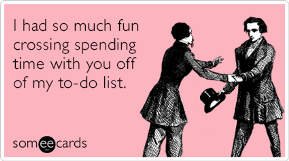 I don't know where I would be without my lists. I am constantly thinking of more things I have to do. I write lists when I go shopping, when I want to do things around the house, and I even write lists of the lists I need to make. This might seem a bit neurotic (it is), but if I don't stay organized my brain could potentially explode. When I invite new friends over, I hide my lists because hanging out with them was probably written down on one of them. They don't need to know how crazy I am right off the bat.