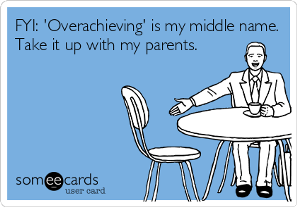 For as long as I can remember, I have been an overachiever. Not just in school related fields but in life. Anything I do, I do well. This might seem like a good thing, and in the end it normally is, but the time during any given project is what I can only describe as a struggle. In fact, even writing this article has proved to be a struggle because it took me an hour to select what to focus on. So, just to give some insight into the world of a neurotic overachiever, here are five things I deal with on a day to day basis.