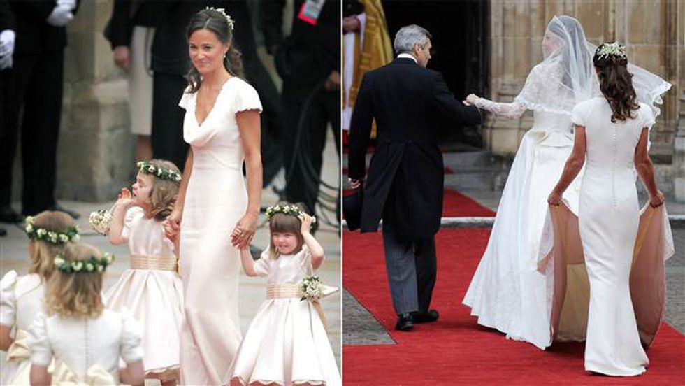 Pippa’s beautiful bridesmaid dress was a simple, yet gorgeous white concoction by Sarah Burton for Alexander McQueen. It featured a deep cowl neck with a fabric of satin-based crepe. It was definitely a standout dress, but it had small detailing that was similar to that of the bride’s. This is similar to that of Princess Diana’s wedding, where all the bridesmaids and flower girls had similar dresses to that of the bride. The dress fit Pippa very well and she definitely made an impression with the fashion world. Pippa didn’t think much of it. She later said "I think the plan was not really for it to be a significant dress. Really just to sort of blend in with the train," Middleton said. "I suppose it's flattering, embarrassing, definitely. It wasn't planned." Well honey, you made it work.