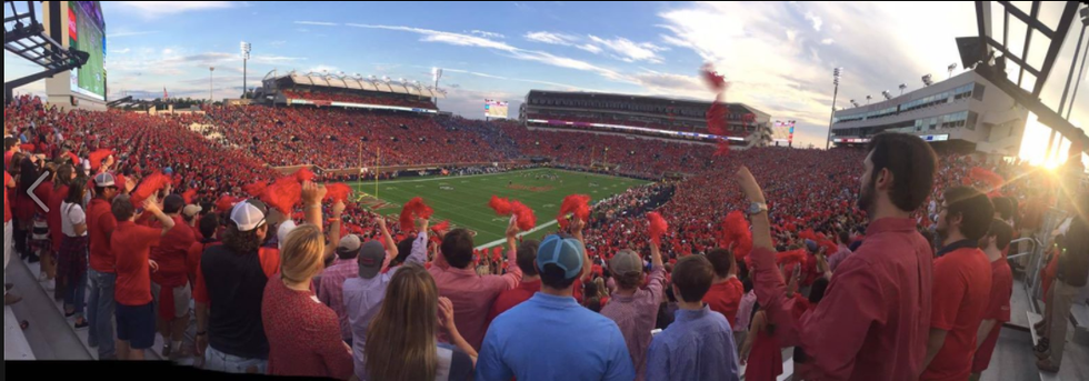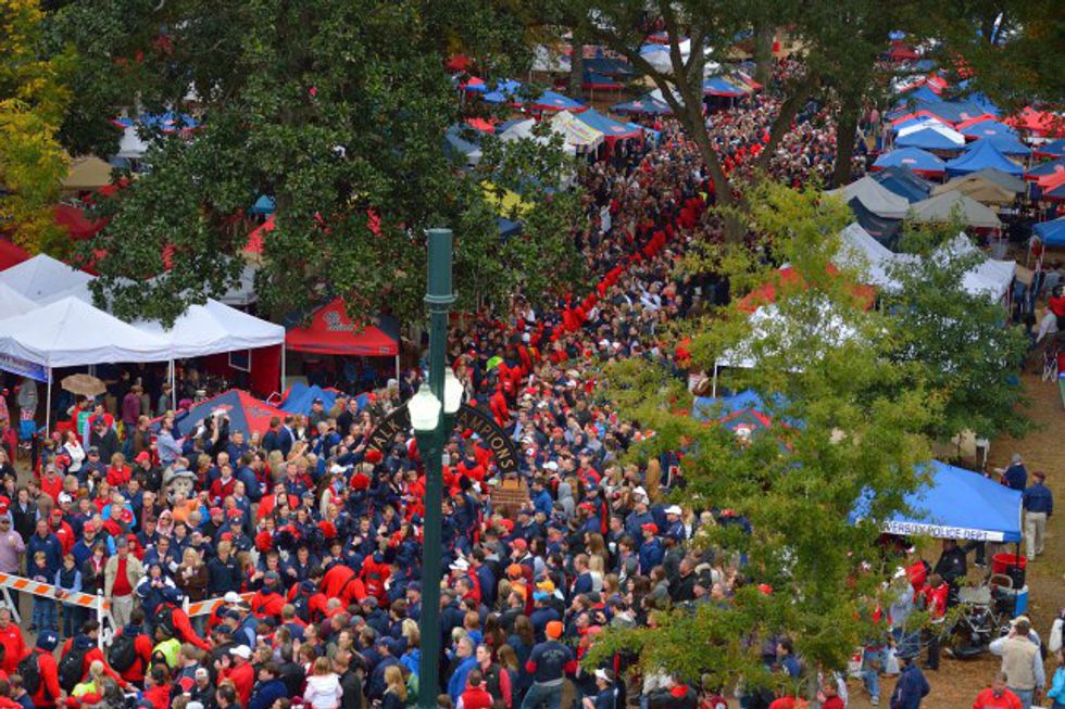 The Grove is a big area where everyone tailgates before the football games. Never have I ever seen so many tents, beer and cowboy boots in my life. I have experienced tailgates at both colleges I’ve been to, and they are nothing compared to what I experienced this past weekend. A majority of the students at Ole Miss, as well as hundreds of families were all tailgating in the Grove before the football game. Even the band played school songs there in order to get everyone even more pumped up before the game.