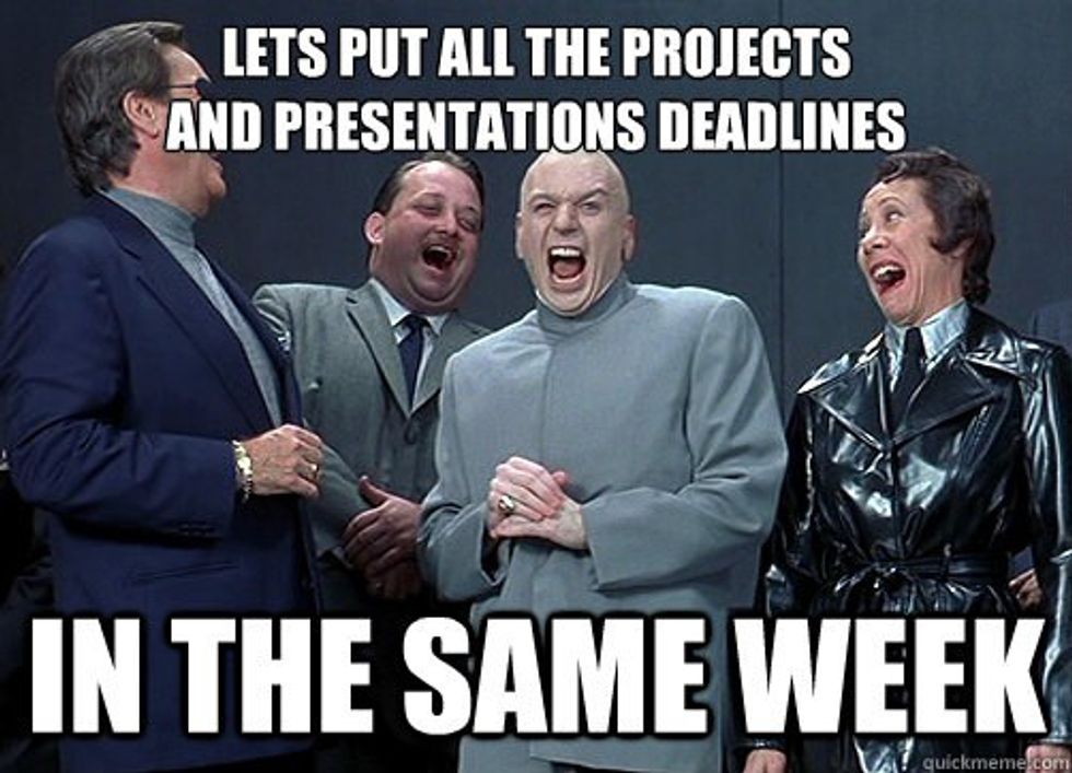 Just imagine, especially if you're a freshmen, the sweet release when all your finals are done, the projects are turned in, you're getting ready to move out and go home for the summer. You're not there yet, but it will be here before you know it because time likes to play mind tricks on you. (Mindless Zuri rambling aside) Stay motivated, time manage well, and do whatever you can to brave the storm!