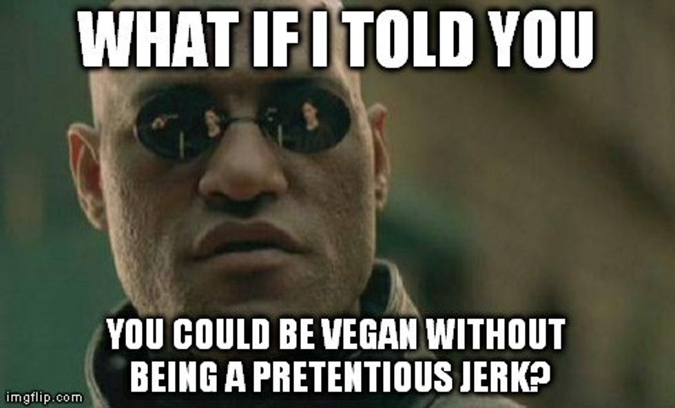 This isn't directed towards all vegans because some can be quiet about it. Most of the time, when someone is vegan, they'll let you know about it. And frankly I really don't care. Not to offend anyone, but if you're a vegan, good for you. The issue is when a vegan can't grasp the fact that someone eats meat. Preaching vegan-ness to someone who eats meat is nothing but annoying. Who cares? It's my life choice to enjoy a steak at dinner, so leave your opinion out of it. If someone who eats meat doesn't judge your life choices to be vegan, don't hoist your negative opinion to someone who chooses to eat meat.