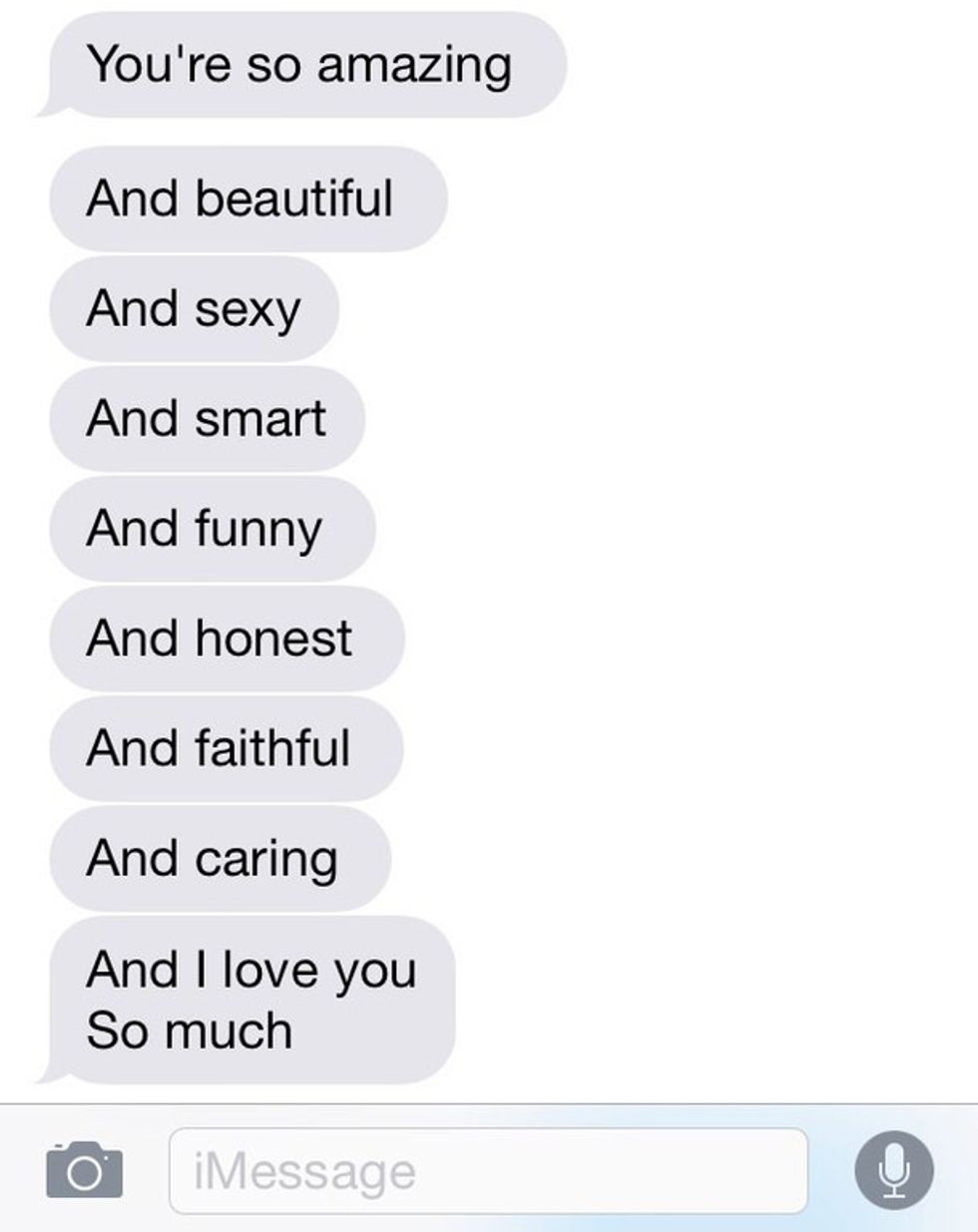 Even though this should be self-explanatory, boys like to be complimented and appreciated just as much as us girls do. Whenever I get the chance, I always make sure I send a quick text to my boyfriend saying that he is "handsome" or that I "appreciate him". If you don't already do that, try it. You'd be amazed at just how happy it might make them. They won't ever tell you, but guys DO love it!