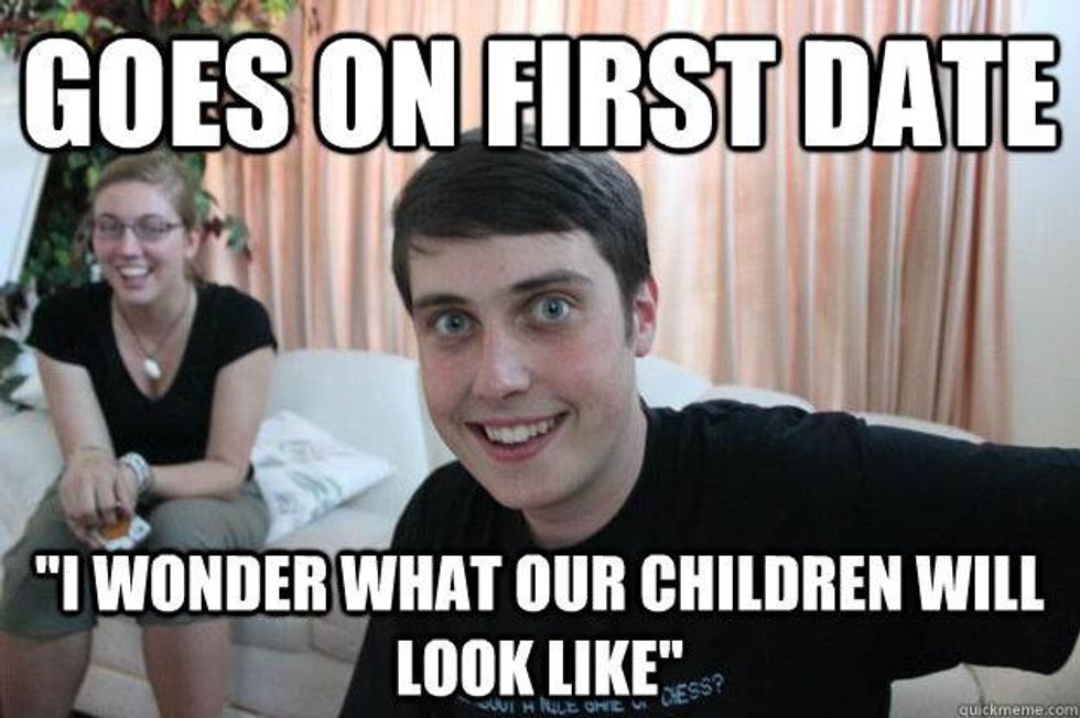 All of my friends had boyfriends and, in an attempt to so desperately fit in, I decided to go out with him. Little did I know, he would become obsessed with me and creep me out to the point where I would hide in the bathroom between classes so I wouldn't have to see him before math. Our relationship only lasted three weeks, but it is three weeks of my life I will never get back.
