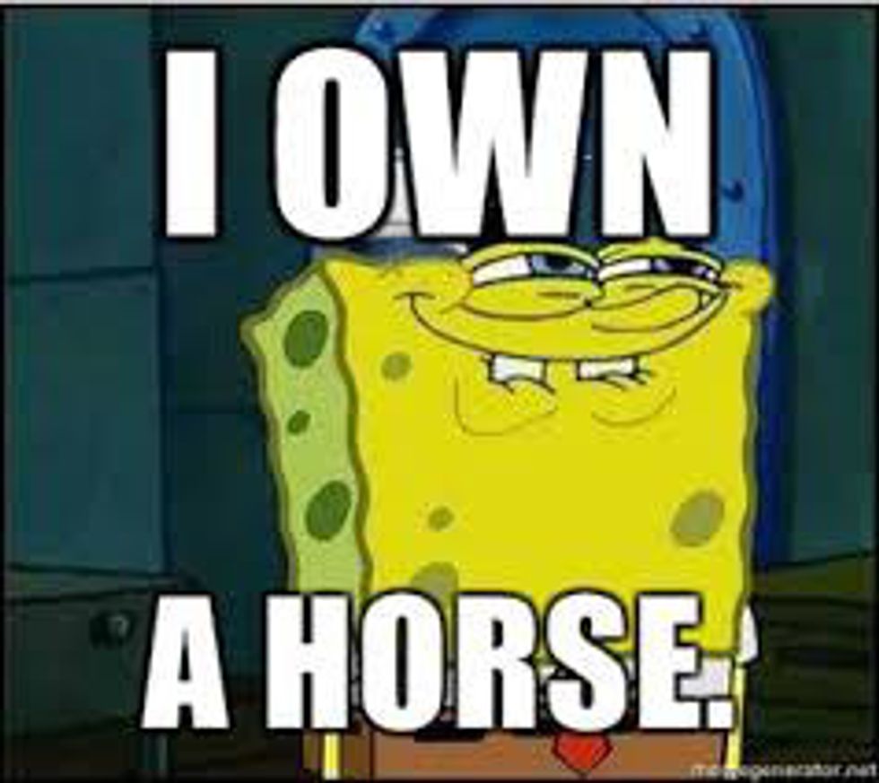 So, there were countless pics on the web that would fit this point, but I thought this one was appropriate. The mare mood swings, the goofy geldings, being spooked by literally everything, their love for pooping in a freshly cleaned stall or trailer, their obsession with treats, etc. We all begin to see that each and every horse is very different and has a personality of its own. I talk to my horse more than I do most people, and she gets me. I remember how I was with horses when I first started, and how far I've come once I learned that they are just like us, just better.