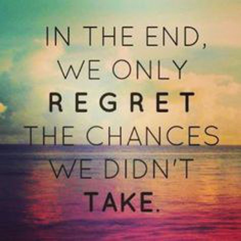 As cliche as it may sound, life is short. It is important to take chances and make the most out of each and every day. Do something that you would not normally do, take a chance, You don't want to spend your life regretting the chances you didn't take. You never know, you might learn something. Step outside your comfort zone each and every day because the only thing you should regret is the chances you didn't take. As Scott Spencer said, “The only things I regret, and the only things I'll ever regret are things I didn't do. In the end, that's what we mourn. The paths we didn't take. The people we didn't touch.”