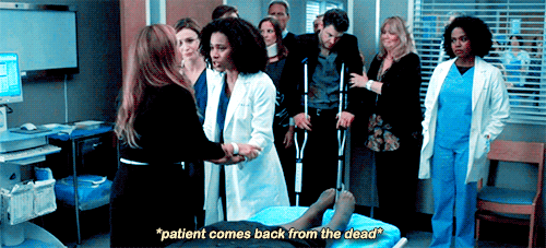 This scene was not cute, my shirt was also not cute when I spilled my drink on it from the scare. Shonda cannot be bringing people back from the dead without fair warning. I was not ready for that lady to sit directly up. And so I say,