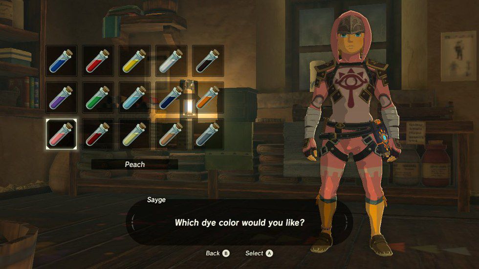 That's right, dye, not die! Visit Sayge in Hateno Village and he'll change the color of your outfit, or an individual piece, in exchange for 20 rupees and five items of the same color. It's a great deal and lets you add some personality to Link.