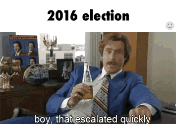 That being said, maybe it's because I'm older, but this election is amazing and terrifying to watch. Donald Trump and Ted Cruz defy even accurate name-calling on my behalf because all of my potential insults (douchebag, loony-bin escapees, nutjob) seemed offensive to people who are actually douchebags, out of a loony-bin, or nutjobs. They both terrify me in so many different ways.