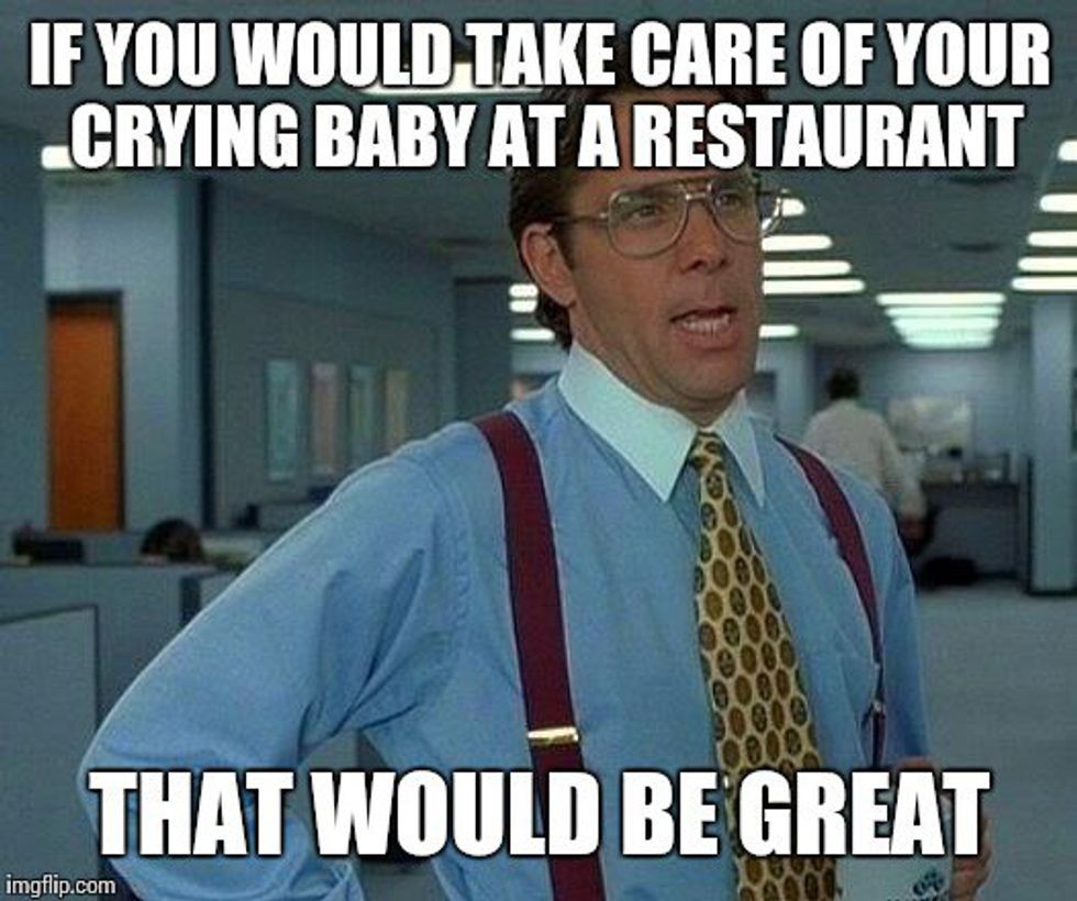 I love babies, heck we all do, but please for the love of God take your baby outside or in to the bathroom to calm the poor thing down.