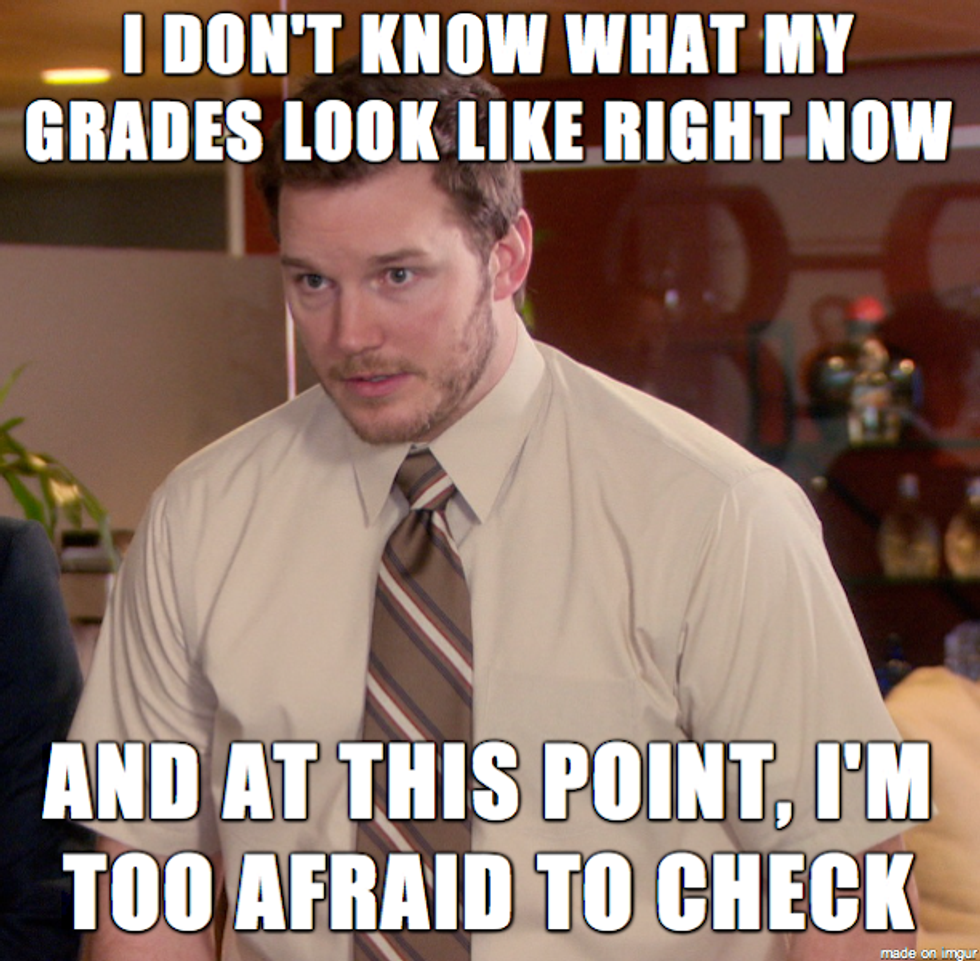5. *Grades are finally up* OH GOD OH GOD OH GOD OH GOD. I can't look. I can't do it. Why did I go to college again? God. I should've dropped out when things started to get tough in 3rd grade math.