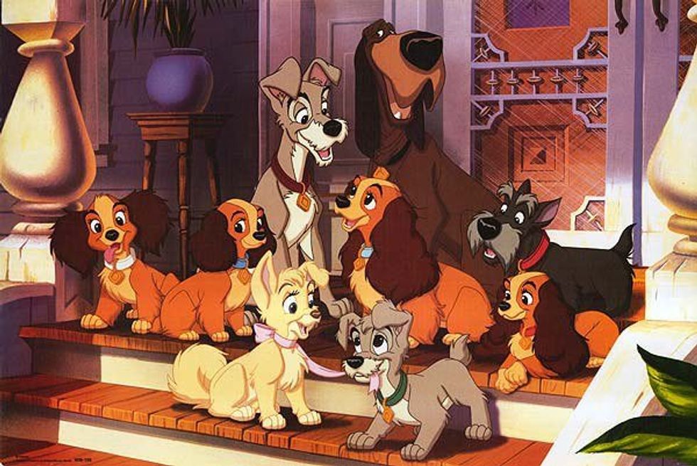 "Lady and the Tramp" is a classic Disney film about Lady, a pampered Cocker spaniel that falls in love with a stray dog, Tramp. Everything is great until Lady's owners Jim Dear and Darling have a baby. Aunt Sarah and her two scheming Siamese cats come to stay and Lady is muzzled. Tramp comes to her rescue and the movie ends with Tramp being caught and taken to the pound by a dogcatcher.