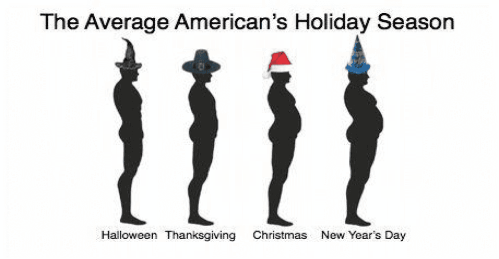 Research shows that people do not lose the weight they gain from winter, so here are a few tricks and tips to not gain that weight! I always find it so hard to eat healthy during the holidays because your family wants you to try everything and they always say, "go back up for seconds!" Some dread the holidays because they know they will gain weight. On average, a US adult consumes 3000 calories at their holiday meal. So enjoy your holiday but don't over eat because you feel obligated!