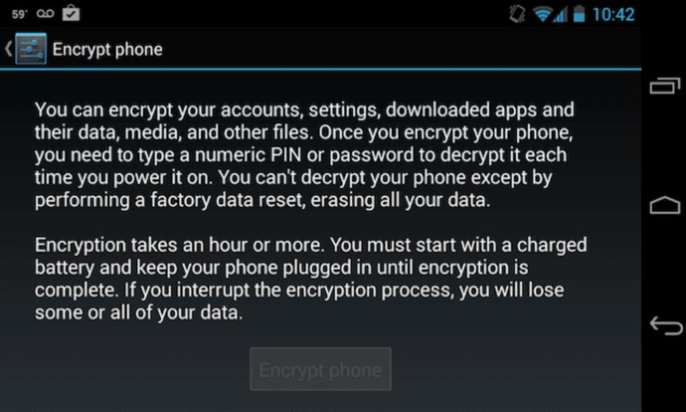 Another way to protect your files is through a process called encryption. To encrypt is conceal data by converting it into a code. Luckily, our smartphones have this capability. If you have an Android, go to Settings > General > Passcode, enable the passcode option, turn off Simple Passcode, and turn on Erase Data. For iPhones, go to Settings > Touch ID & Passcode > Select a Passcode and then scroll to the bottom of the list. You should then see a message that says “Data protection enabled,” which indicates that the device's encryption is now tied to your passcode.