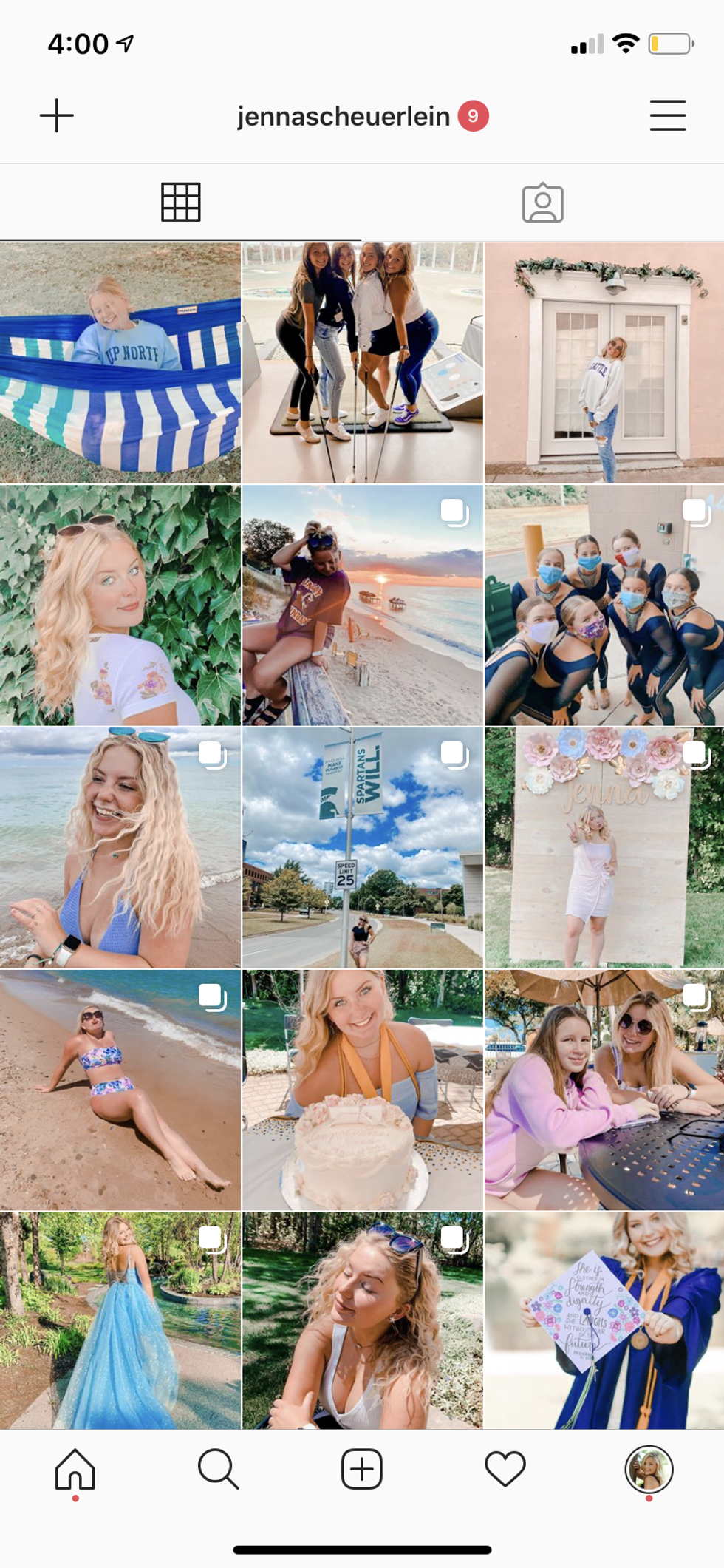 This one comes pretty easy to me but can be difficult for a lot of other people. I tend to wear the same colors and spend a lot of time outside, therefore it makes sense that my feed is basically white, blue, and pink. Now that I know that, if I'm going to take a picture for Instagram I'll stand in front of a white wall on purpose or I'll wear something blue. It's really the little things that can make your feed intriguing enough to gain a follow!