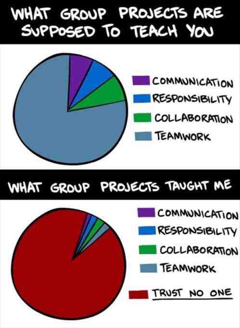 "I have a shitty group to do this project with" is coming into its own excuse that parallels "the dog ate my homework"—except it’s actually true most of the time. Since many colleges and universities are geared toward group work, in order to prepare you for working in teams in your future job, we’ve all been stuck with the worst groups. Believe it or not, there is a way to make group work a little more endurable. If you genuinely care about your work and aren’t just searching for an excuse to do a poor job, here’s how to be successful in a group project:
