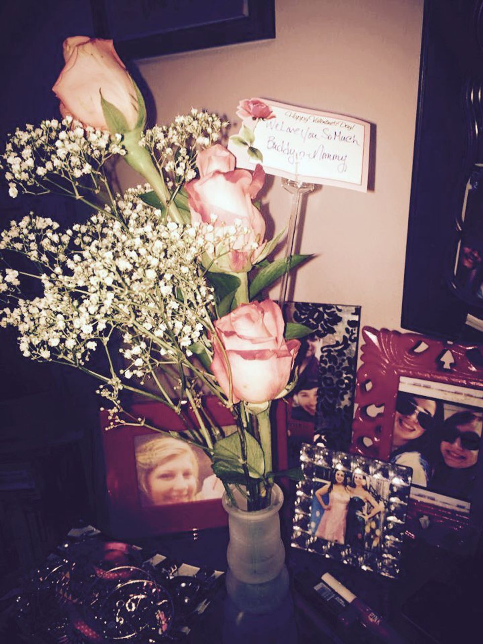 Wear an outfit that makes you feel comfortable, sexy, stunning... anything that you love and makes you feel good. Fix your makeup and hair and pretend that you're headed to New York City for an endless shopping spree during springtime. (Valentine's colors and accessories, optional)