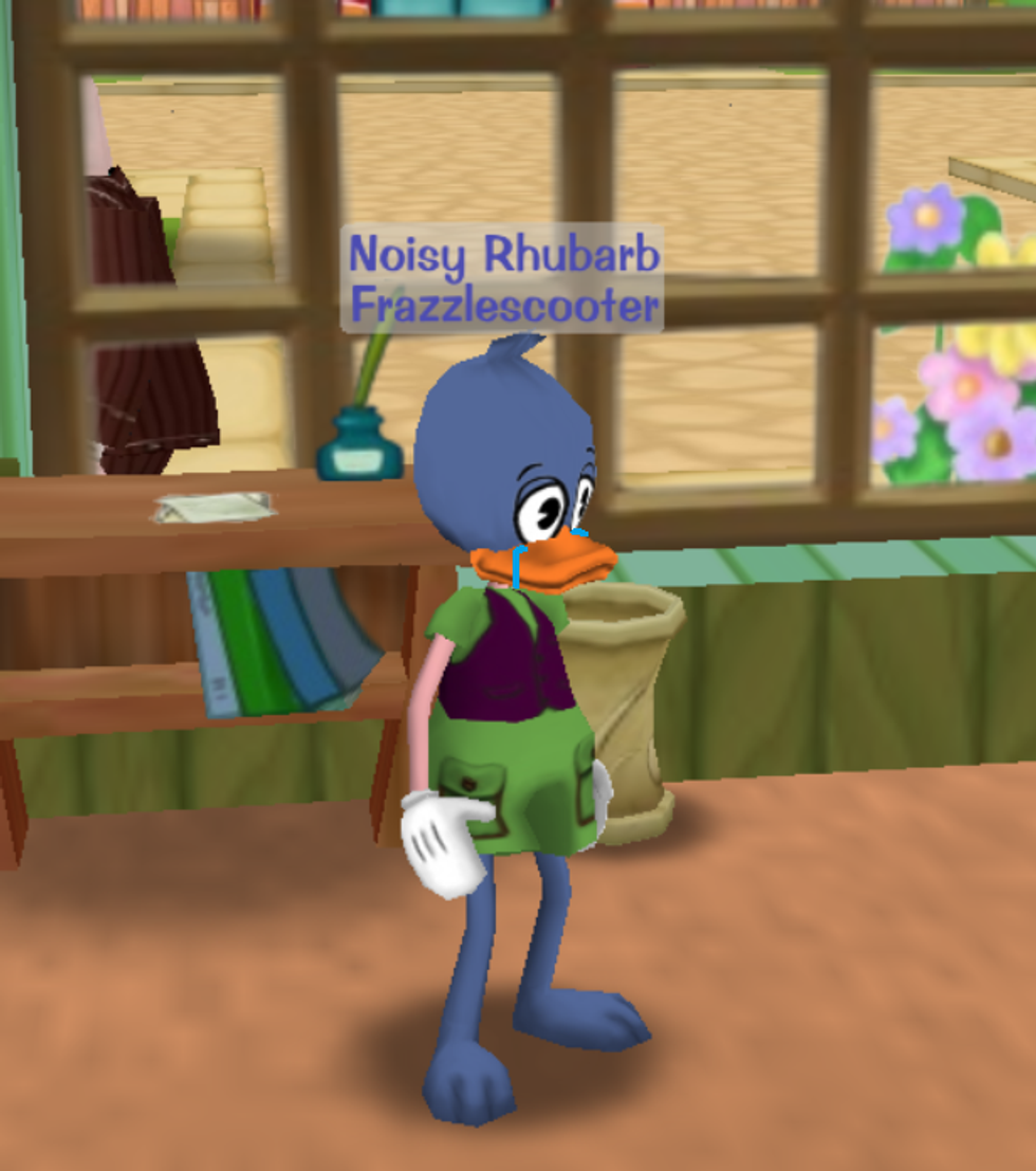 - Really delve into your toon. Make them well-rounded, intricate, and layered. Give them a unique background. For example, my duck Noisy Rhubarb Frazzlescooter is a man with a dark and mysterious past, unwillingly enlisted in the war against the cogs. Will he overcome his haunting memories and fight for the good of all toons, or has he already lost too much hope in the community that wounded his soul and made his heart so dark? We may never know.