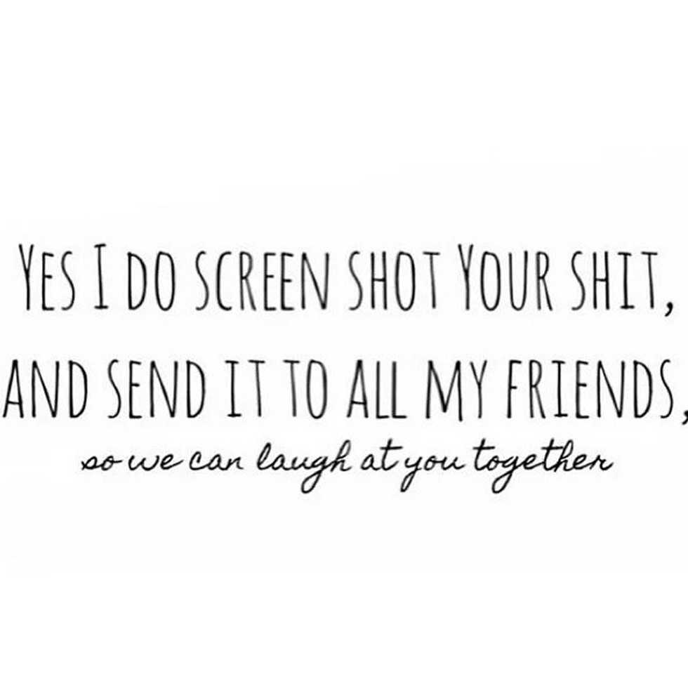 With the invention of iPhones came the invention of screen-shotting: one of the most revolutionary ideas of our time, in both good and bad ways. It has made relaying messages, showing friends pictures, sharing both cute and mean texts from boys, and so much more so much easier than before. Screenshots are such a common form of communicating now, and I personally love to utilize this ability. Here are a few of the typical screenshots sent on pretty much a daily basis.