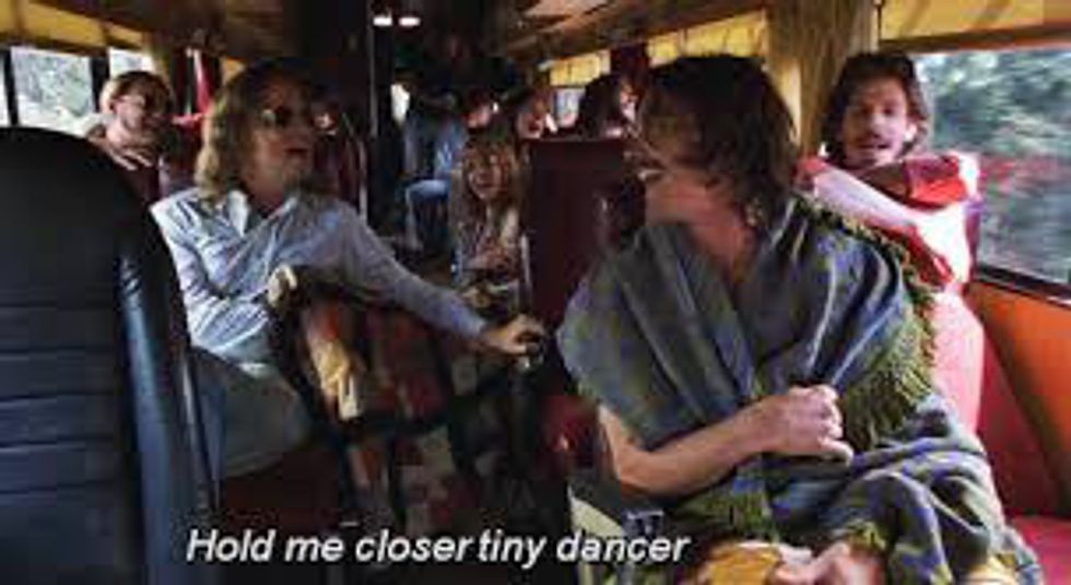 5. "Almost Famous:" A movie about a young boy following around a rock band is cool enough as it is. Of course there are some arguments among the characters and some obstacles they need to overcome, but it's the way they do it that makes this movie great. The whole band won't speak to each other, and then it happens... "Tiny Dancer" by Elton John plays. As any normal person would agree, not singing along to this song is nearly impossible, and as all the characters break out in song they forget their issues and stop fighting. If real life problems were solved this way, I think we would all be much better off.