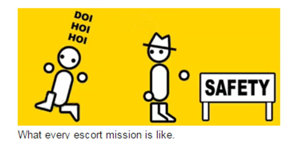 Many gamers will tell you about the horrors of escort quests. You are entrusted with the life of some hopeless soul and have to try and take them where they want to go without them getting killed by something. This is easily one of a gamers worst nightmares because of how clueless these NPC's are. Usually they end up getting killed by something a couple times and you have to keep starting over, but eventually you make it to your destination and you sit there thinking "Wait, what? We actually made it? How are you alive?! I don't know but I won't question it."