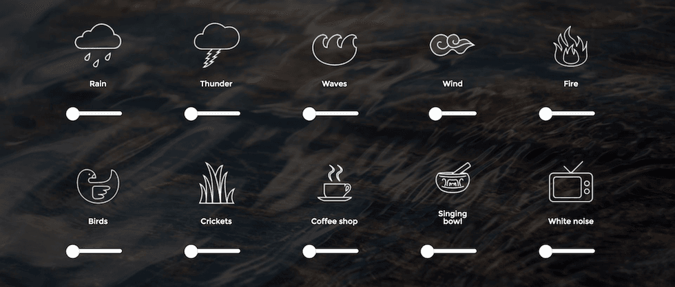 A Soft Murmur was created by Gabriel Martin, with the help of others. This website comes with 10 different sounds (as shown above) you can mix and match to your liking. By adjusting the white volume bars under each specific sound, you are able to create your own natural playlist, essentially. You can create multiple settings such as, thunder storms with the crackling of a warm fire, a windy night with the crickets chirping and even a coffee shop with birds playing outside. There's so many more combinations to make yourself! A Soft Murmur is also available on Android; as the Apple version for iPhones and iPads are coming soon!